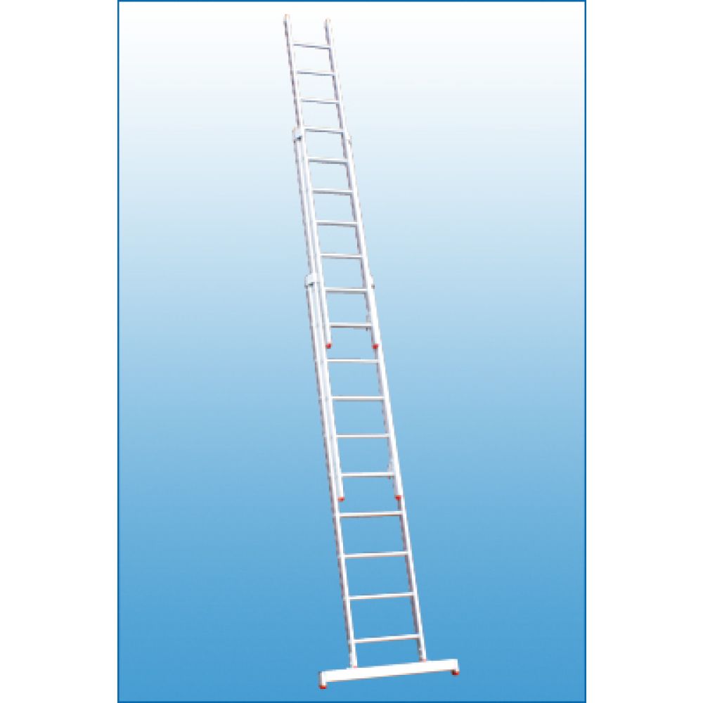 Reform ladder recht 3-delig + gevelrollen3x10 sportenLengte in/uitgeschoven: 2,75/6,25mProfiel: 65Gewicht: 20,5kg Ook is er een stabiliteitsbalk aan de onderkant bevestigd.