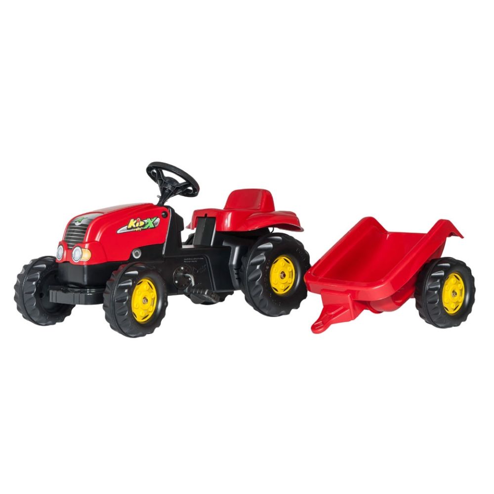 Je kleine boer of boerin vindt het reuzegezellig met deze geweldige RollyKid X-traptractor. De tractor is gemaakt van duurzaam materiaal en heeft een mooie rode kleur. Dit robuuste voertuig heeft een verstelbare zitting waardoor je kind al gauw met zijn of haar voeten bij de trappers kan. In de bijgeleverde aanhanger kan al het favoriete speelgoed mee tijdens de ritjes. De aanhanger kan bovendien gemakkelijk aangekoppeld worden achter de tractor, zodat je kind dit al vrij snel zelf kan doen. Uiteraard is het mogelijk om een voorlader aan de tractor te bevestigen voor nog meer speelplezier.Eigenschappen: