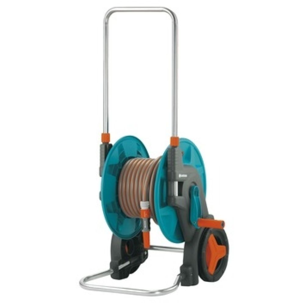 Slangenwagen classic 60 ts setMet de Gardena classic slangenwagen 60 TS wordt water geven echt leuk. De speciaal gevormde voet zorgt voor grote stabiliteit. Daardoor zal de slangenwagen niet snel kantelen, bijvoorbeeld als u aan de slang trekt. Een andere speciale functie is het individueel in hoogte verstelbare, innovatief gemonteerde handvat. Zo kunt u de wagen comfortabel voorttrekken op een hoogte die voor u geschikt is. U kunt het handvat ook inklappen om bij opbergen ruimte te besparen. Ook de zwengel kan worden ingeklapt om nog meer ruimte te besparen.Een meedraaiende aansluitas voorkomt verdraaien van de slang bij het op- en afrollen. Een geïntegreerde druppelstop voorkomt het weglopen van water na gebruik of tijdens transport. Dankzij de afgeronde slangaansluiting in de haspel knikt de slang niet en een volledige waterafgifte is altijd gegarandeerd. De profielwielen staan garant voor eenvoudig en probleemloos duwen.