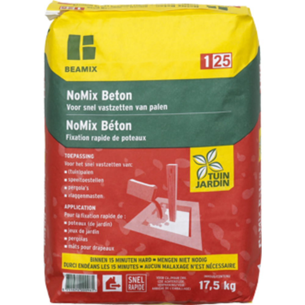 Snelbeton Nomix 25kgBinnen 15min. hard Voor het snel vastzetten van atrasteringspalen, speeltoestellen enz.