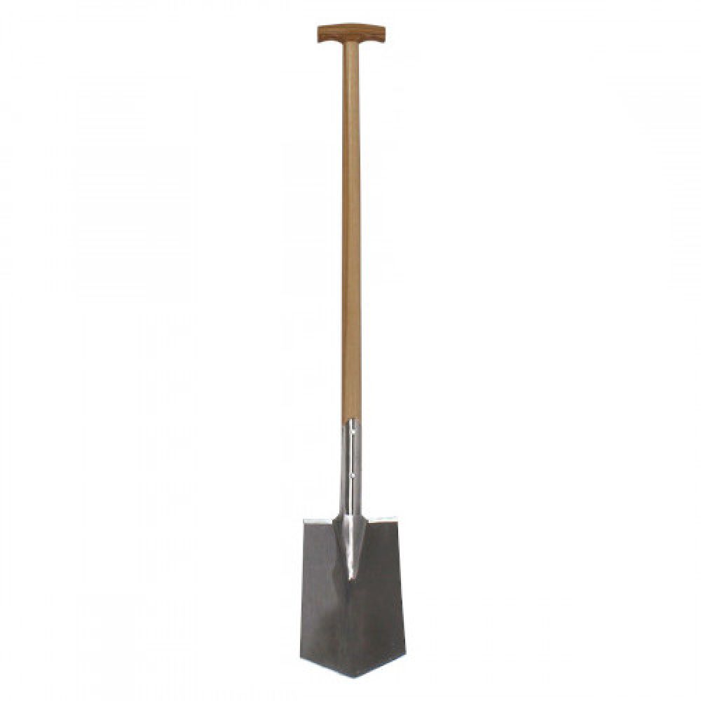 De spade van Talen Tools heeft een blank gepolijst blad. Hierdoor gaat de spade makkelijk de grond in en door de gladde afwerking glijdt het grond weer van de spade af. Doordat het blad gepolijst is, gaat het corrosie tegen. Dit geeft de spade een lange levensduur! Daarnaast blijft het blad zichzelf slijpen. De essenhouten steel is gewaxt en hierdoor blijft het hout ademen en neemt het geen water en vuil op. De steel is 90cm lang en voorzien van T-greep waardoor u extra druk kunt uitoefenen.