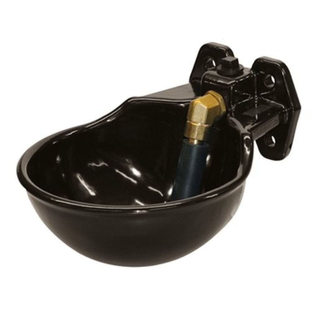 Suevia drinkbak met staaf geemailleerd• Grote waterbak gemaakt van gietijzer • Gelakt • Eenvoudig te reinigen kom • Inhoud: 1,7 liter • Waterinlaat 1/2 inch van boven en onder • Voor wand en buis montage • Koperen pijp ventiel • 8 Liter per minuut. Water toevoer 3 bar waterdruk Suevia drinkbak drink bak drinkbakken bakken staaf geemailleerd zwart paard paarden
