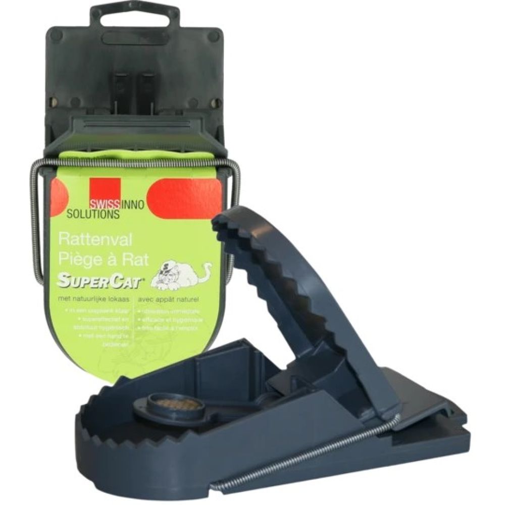 Kunststof rattenval met hoge slagkracht en standaard voorzien van lokaas.
