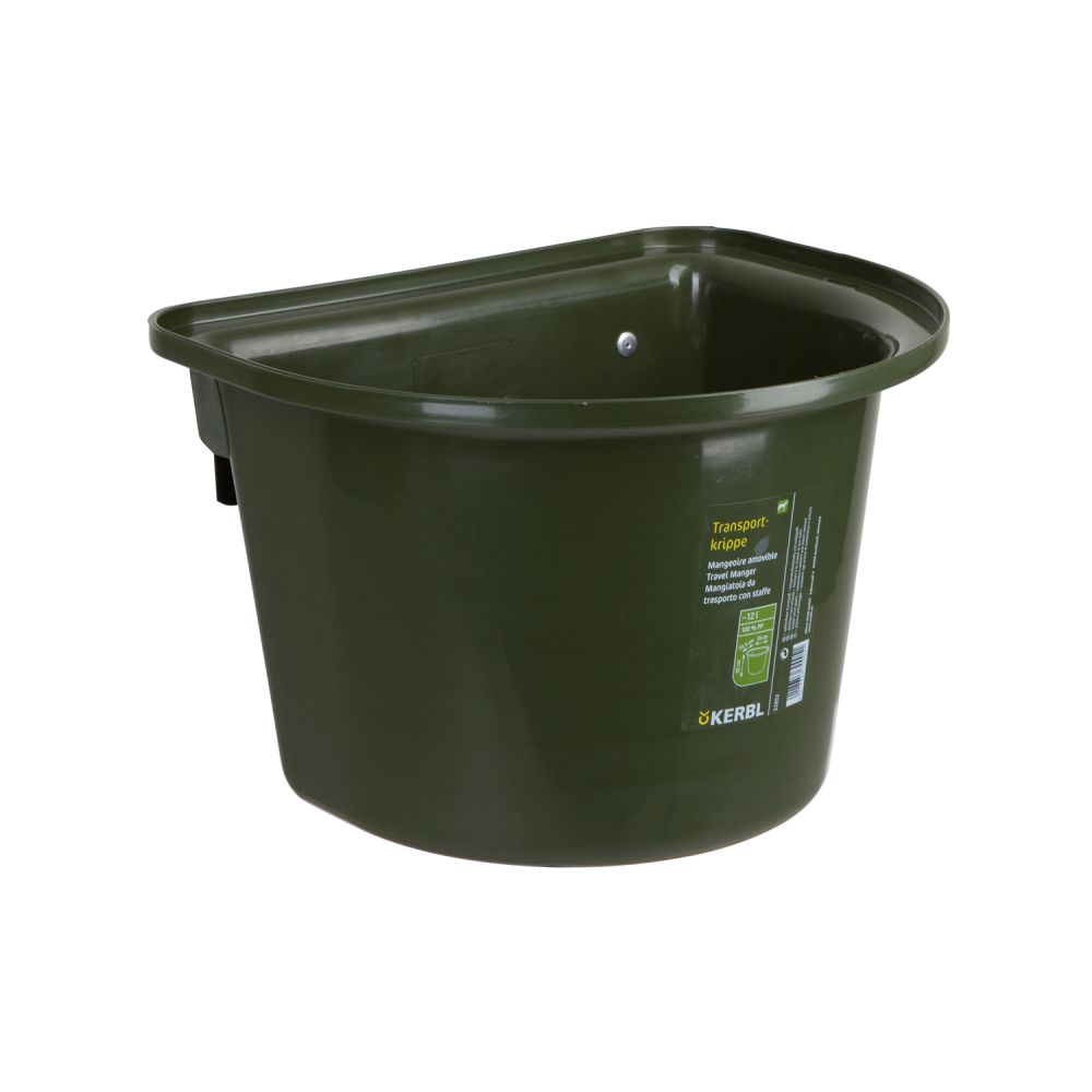Transportbak met ophangbeugel 12L - donkergroenInhoud 12 liter• Van splintervrij kunststof• Met metalen beugels om op te hangen• Ook geschikt om de paardentrailer op te hangen