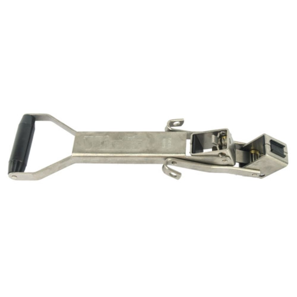Veeverlosser krikgedeelte standaardHet Vink-Veeverlosapparaat is eenvoudig in het gebruik, ook voor degenen die met de reeds bestaande verlosapparaten slecht overweg kunnen. Men plaatst de steun tegen de achterzijde van het dier met de open kant aan de rugzijde, zodanig dat de zitbeenknobbels door de steun worden omvat. Hierna bevestigt men de touwtjes aan de poten van het kalf en aan de haken op het krikgedeelte en zet men de touwtjes onder spanning. Het apparaat zal nu vanzelf op de juiste plaats glijden, zowel bij liggende als bij staande dieren. H