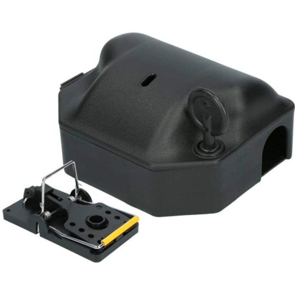 Voerdoos muis incl. muizenklem en sleutelVoerdoos voor muizenDeze voerdoos bevat een muizenklem waarmee u gemakkelijk muizen bestrijdt. Hij is zeer veilig in gebruik dankzij sluiting d.m.v. een sleutel. De inspectiegleuf in het deksel geeft u de mogelijkheid om te inspecteren zonder de box te hoeven openen. Ook is deze voerdoos gemakkelijk aan de vloer te bevestigen dankzij de voorgeboorde gaten. • Kindveilig d.m.v. speciale sluiting• Bevat muizenklem• Mogelijkheid om aan de vloer te bevestigen VeiligheidDeze voerdoos beschikt over bevestigingsgaten in de bodem. Hiermee kunt u eenvoudig de voerdoos vastzetten aan een stevige ondergrond (wordt geleverd excl. bevestigingsmateriaal). Doordat u de voerdoos aan de ondergrond bevestigd, zal deze niet meer worden versleept of wegwaaien. Ook kinderen en huisdieren zullen er dan niets meer mee kunnen. Extra veilig dus! Formaat12,5 x 10,5 x 6,5 cmH
