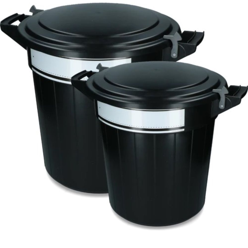 Voerton zwart met deksel , slot en schrijflabel 40L