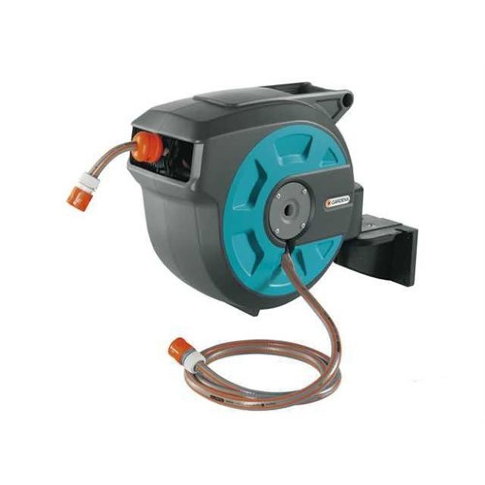 Wandslangenbox comfort 15 roll-up automaticVoor terrassen en kleinere tuinenDe gardena comfort wandslangenbox 15 roll-up automatic maakt besproeien bijzonder eenvoudig en comfortabel. De slang wordt automatisch opgerold. De praktische slangenbox wordt aan de muur bevestigd en is 180 ° zwenkbaar. De slang kan met weinig inspanning worden uitgetrokken en gestopt met korte tussenpozen van maximaal 50 cm. De kwaliteitsslang van 13 mm levert een hoge waterdoorstroom en optimale werking van de sproeier. Met een korte ruk aan de slang, wordt de vergrendeling opgeheven en wordt de slang door de roll-up automatisch de box ingetrokken zonder dat u hier verder iets voor hoeft te doen. Uw handen blijven schoon. Een geïntegreerde stalen veer perfect op de slanglengte afgestemd, zorgt voor een krachtige, gelijkmatige slangretractie. De geïntegreerde slanggeleider voorkomt verdraaien en verstrengeling van de slang. Na gebruik kan de aansluitslang eenvoudig op de druppelstop bevestigd worden om weglopen van water te voorkomen. Broezen, sproeiers en wasborstels kunnen worden opgehangen aan de wandhouder zodat ze altijd onder handbereik zijn. Voor de winter kan de slangenbox eenvoudig met de ergonomisch gevormde handgreep van de houder afgehaald worden voor opslag in een vorstvrije ruimte. de wandslangenbox is compleet uitgerust met een 15-meter lange kwaliteitsslang, een 2 meter lange aansluitslang, een traploos verstelbare tuinspuit en de benodigde original gardena system onderdelen: drie slangstukken een standaard slangkoppeling en een waterstop. Dankzij de meegeleverde wandhouder, samen met schroeven en pluggen, is de montage een fluitje van een cent. besproeien is heel eenvoudig - met de comfort wandslangenbox 15 roll-up automatisch.