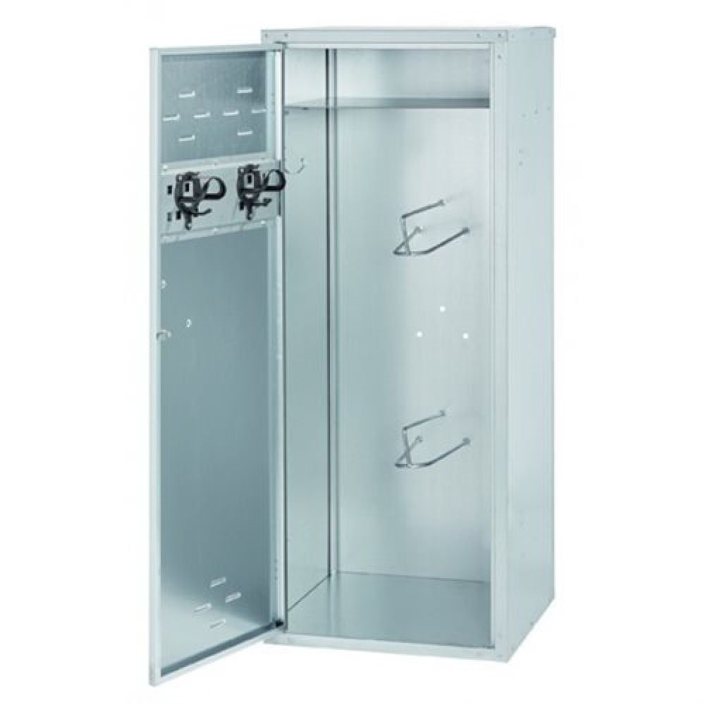 Zadelkast verzinkt incl. 2 Zadeldraders 150cm hoogNiet alleen aan de zeer ruime keus, maar aan de details is een Growi Zadelkast direct herkenbaar.Zeer stabiele zadelkast van verzinkt plaatstaal. Het plaatwerk heeft dubbel omgevouwen randen, dus geen scherpe kanten.Growi basic zadelkasten worden als bouwpakket geleverd. Aan de hand van de duidelijke handleiding kan u de kast zonder speciaal gereedschap eenvoudig in elkaar zetten.Alle kasten zijn voorzien van ‚* twee zadelhouders* twee hoofdstelhouders,* één verstelbare legplank* één ophanghaak* een zeer stevige handgreep* degelijk cilinderslot.