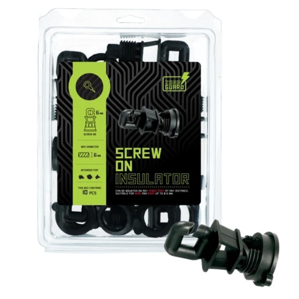 Kan op iedere afrasteringspaal worden gemonteerd, op iedere afstand.Voor koord en draad tot ø 6 mm.